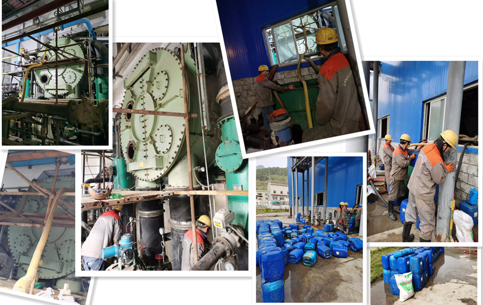 在凝汽器清洗過程中,使用了冠潔高效殺菌粘泥剝離劑,先清除了生物粘泥等軟垢后,又使用了GJ-2E除銹除垢劑及配合其它清洗藥劑對(duì)碳酸鹽磷酸鹽等硬垢進(jìn)行深度清洗。到了堿洗預(yù)膜這一步驟后,此次電廠凝汽器清洗也將接近尾聲了。