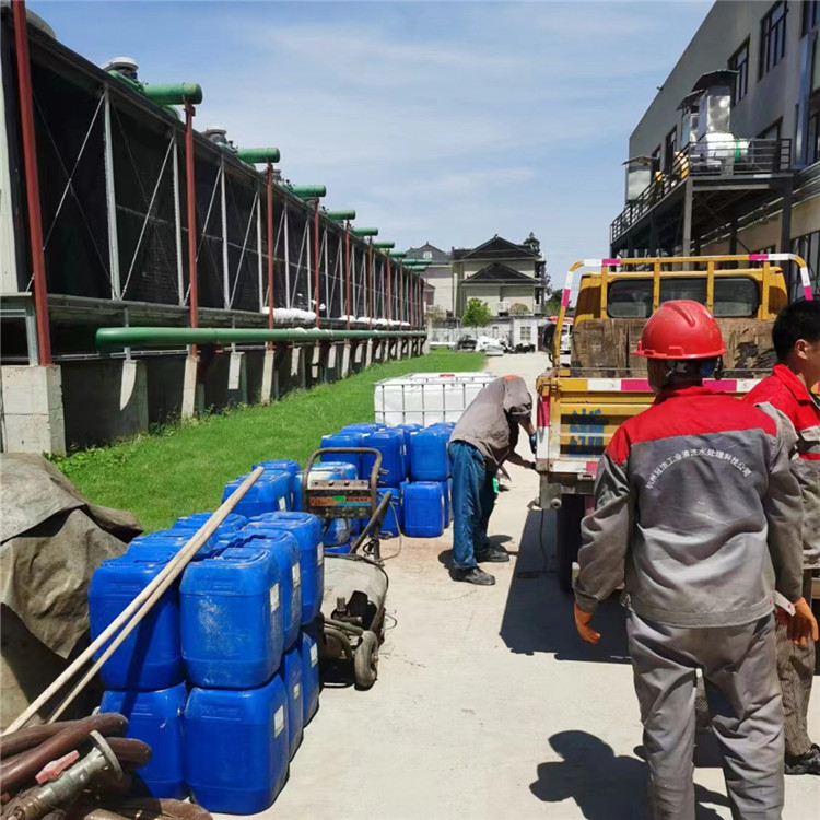 2022年7月20日,杭州冠潔轉戰(zhàn)嘉興,進行大型中央空調(diào)冷水機組冷卻塔水系統(tǒng)清洗預膜工程施工。