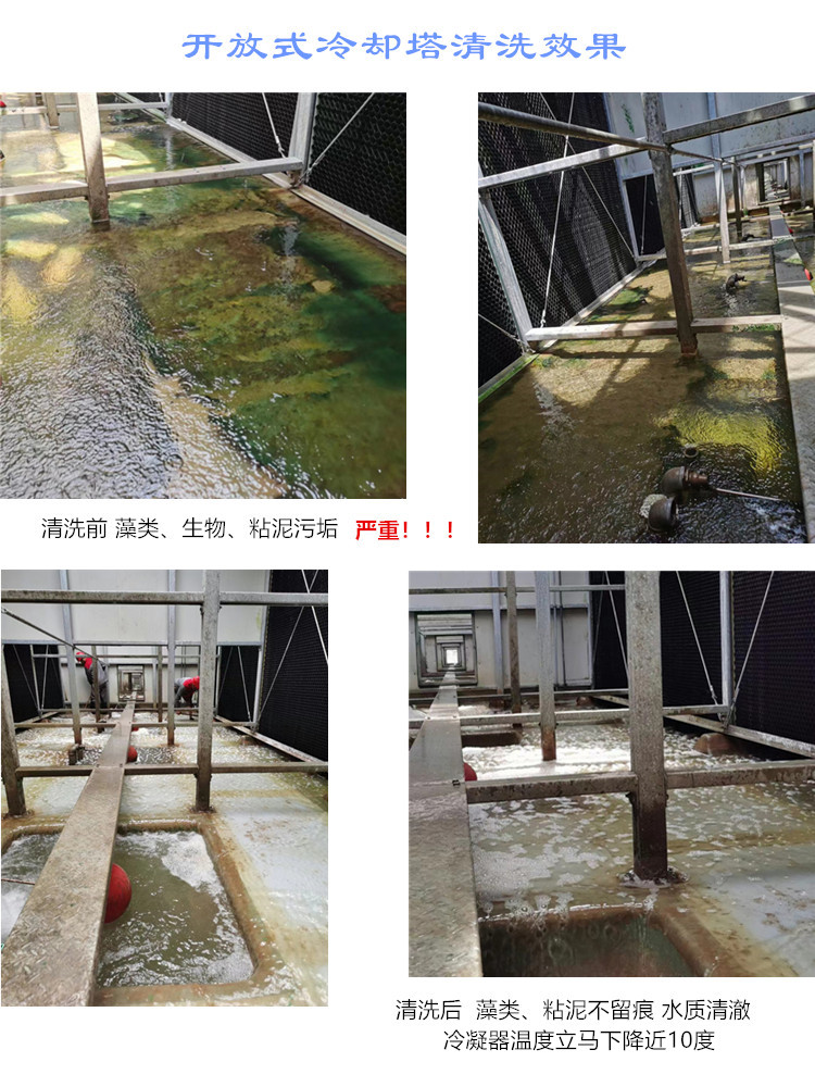 在進行初次清洗,加入GJ-高效殺菌粘泥剝離劑循環(huán)清洗后,馬上就有效果,冷凝器小溫差從六七度降到一二度,實現(xiàn)了高效快速的清洗劑特點,得到了業(yè)主的肯定,使工作也更好的進展下去,在經(jīng)過2天的奮戰(zhàn)后,空調(diào)循環(huán)水系統(tǒng)清洗預膜工程也圓滿結束。