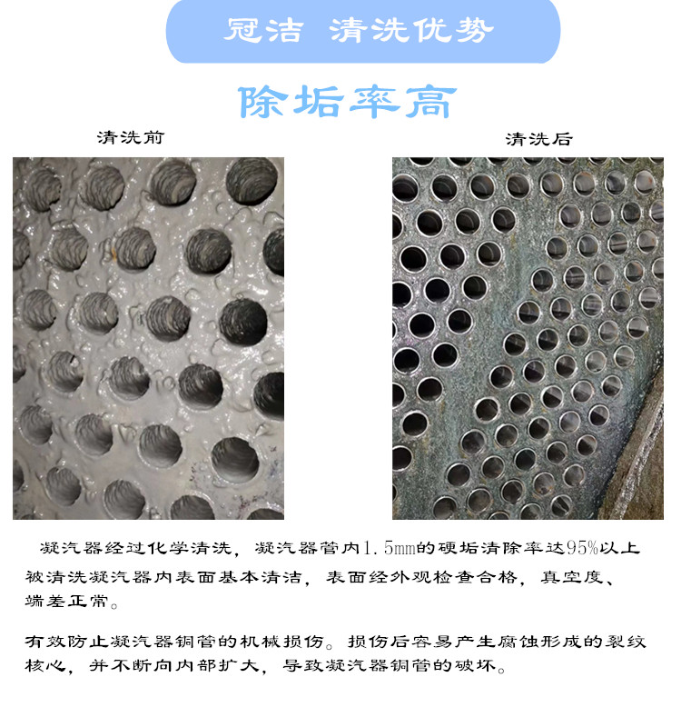 在進行凝汽器化學清洗時,作為凝汽器清洗廠家,應對凝汽器設備情況進行分析,以及結合眾多電廠凝汽器清洗經(jīng)驗,用GJ-4E水垢清洗劑進行化學清洗。