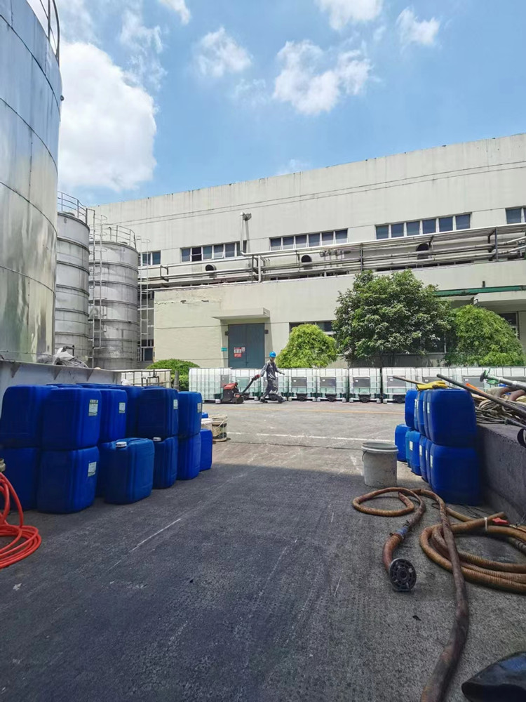 上周,杭州冠潔工業(yè)清洗水處理科技有限公司工程部來到杭州某化工企業(yè)進(jìn)行100噸不銹鋼儲罐酸洗鈍化項(xiàng)目工程施工。不銹鋼罐內(nèi)壁及焊接部位結(jié)垢嚴(yán)重,多為銹垢銹瘤,雖是亡羊補(bǔ)牢,但也算不晚,普通清洗劑已無法徹底清除,所以我公司選用冠潔GJ-2E除銹除垢劑配合使用冠潔GJ-鐵銹鐵瘤增溶劑及其它助劑進(jìn)行酸洗,酸洗完工后,需進(jìn)行鈍化預(yù)膜采用冠潔GJ-不銹鋼酸洗鈍化劑,以去除表面鐵離子,形成耐腐蝕的鈍化膜,否則在一些焊接部位,在熱應(yīng)力作用及薄弱環(huán)節(jié),使用后會形成腐蝕,甚至穿孔泄漏。