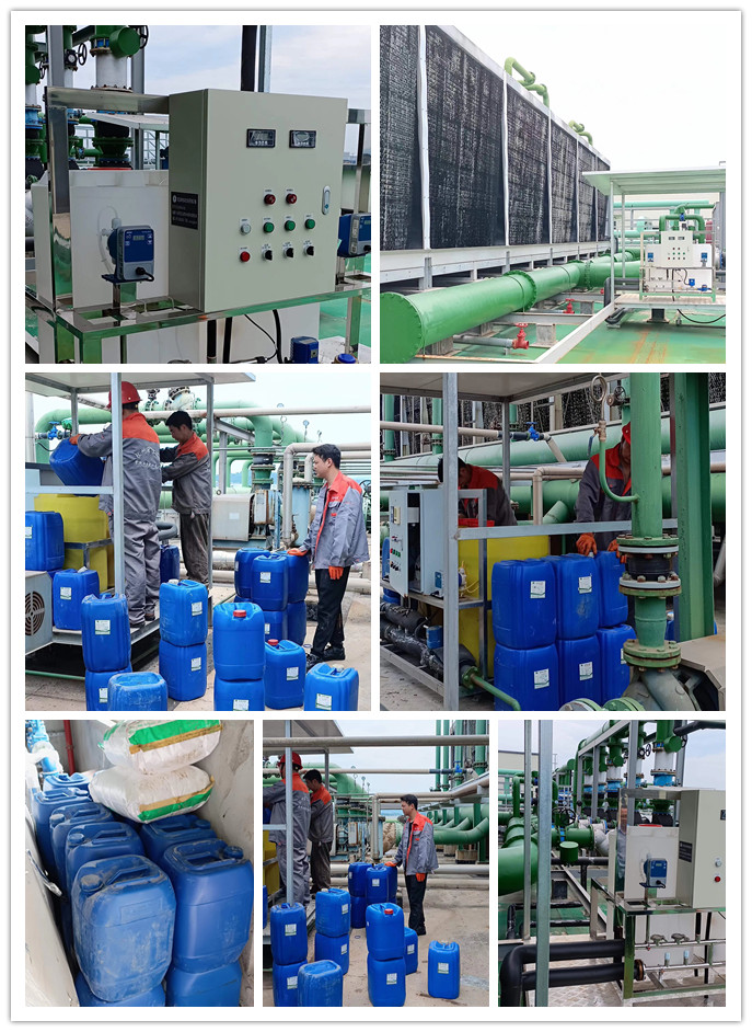 在湖州的這片繁榮土地上,某藥業(yè)公司又迎來(lái)了一位新成員——一臺(tái)先進(jìn)的自動(dòng)加藥設(shè)備,它正式投入二期工業(yè)循環(huán)水處理系統(tǒng)的懷抱,成為該公司水處理劑使用的得力助手。杭州冠潔技術(shù)團(tuán)隊(duì),如同忠實(shí)的守護(hù)者,每半月一次,準(zhǔn)時(shí)為這循環(huán)水系統(tǒng)注入新的活力——水處理藥劑,確保循環(huán)水處理的順利進(jìn)行。